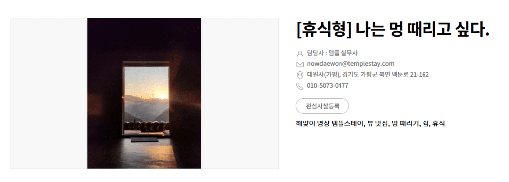단순한 여행이 아니라 명상, 공양, 스님과의 차담 등 깊이 있는 경험이 가능한 것이 특징입니다.
