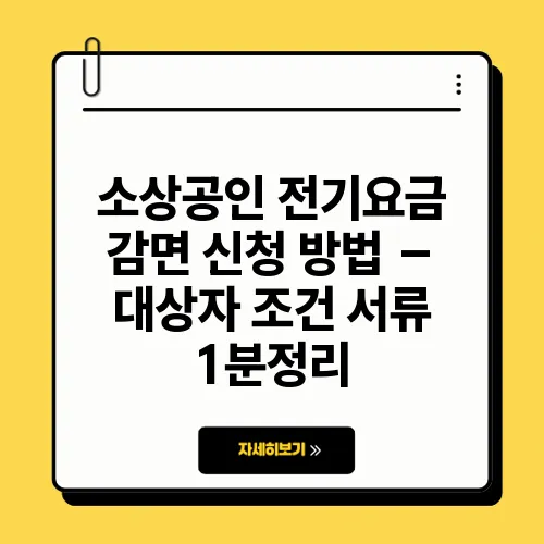 소상공인을 위한 전기요금 감면 신청 방법과 대상자 조건, 필요한 서류를 간단히 정리했습니다. 쉽게 확인하세요!