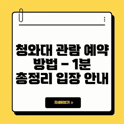 청와대 관람 예약 방법과 입장 안내를 1분 만에 정리했습니다. 쉽고 간편한 예약 절차로 청와대를 만나보세요!