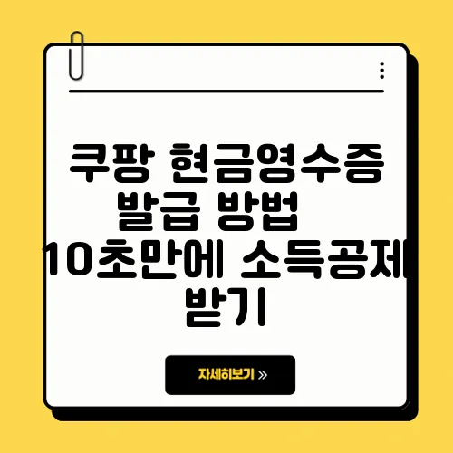 쿠팡에서 현금영수증을 간편하게 발급받아 소득공제를 최대한 활용하는 방법을 알아보세요. 10초면 충분합니다!