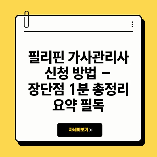 필리핀 가사관리사 신청 방법과 장단점을 1분 만에 총정리! 필독 자료로 가사관리사의 혜택과 유의사항을 간편하게 확인하세요.