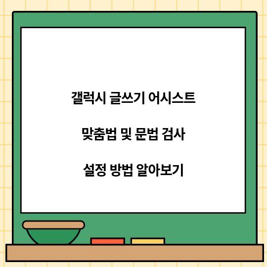 이 글에서는 갤럭시 글쓰기 어시스트를 이용해 맞춤법 및 문법 검사 설정하는 방법에 대해 알아봅니다. 유용하고 쉽고, 기억에 남을 방법을 제시합니다! ...