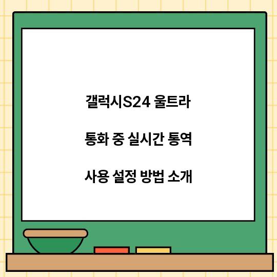 갤럭시S24 울트라의 통화 중 실시간 통역 기능을 설정하는 방법을 소개합니다. 이 기능을 통해 해외 통화 시 언어 장벽을 부드럽게 넘을 ...