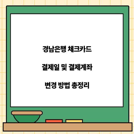 경남은행 체크카드 결제일 및 결제계좌 변경 방법에 대해 자세히 알아볼 수 있는 포스트입니다. 이 방법들을 통해 누구나 쉽게 결제일과 계좌를 ...