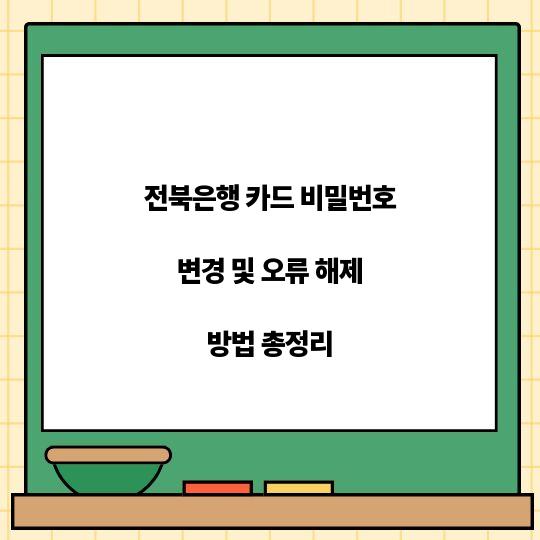 전북은행 카드 비밀번호 변경 및 오류 해제 방법을 알아보세요. 간단하고 실용적인 방법으로 안전하게 비밀번호를 변경하고, 오류를 해제하는 절차를 상세히 설명합니다. ...