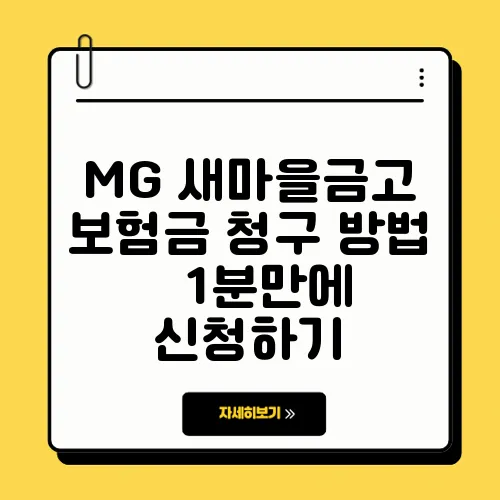 "MG 새마을금고 보험금 청구 방법을 1분 안에 간편하게 확인하세요. 빠르고 쉬운 청구 절차로 보험금을 빠르게 받을 수 있습니다."