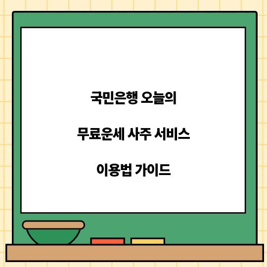 오늘의 무료운세 사주 서비스는 국민은행의 제공으로, 올바른 방법과 절차를 통해 쉽게 이용할 수 있습니다. 이 가이드를 통해 자세한 서비스 이용법을 ...