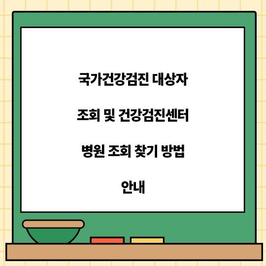 국가건강검진 대상자 조회 및 건강검진센터 병원 조회 찾기 방법을 쉽게 안내합니다. 필요한 정보를 쉽고 간편하게 확인하여 건강을 지키세요! 국가건강검진 대상자 ...