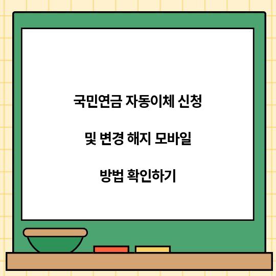 국민연금 자동이체 신청 및 변경 해지 방법을 모바일로 쉽게 확인할 수 있는 방법에 대해 알아보겠습니다. 이 과정을 통해 복잡한 절차를 ...