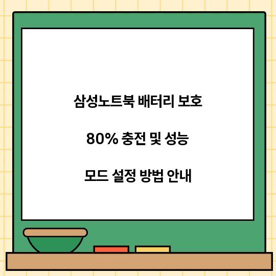 삼성노트북의 배터리를 오래 사용하고 싶으신가요? 여기서는 삼성노트북 배터리 보호를 위한 80% 충전 설정과 성능 모드의 효과적인 활용 방법을 안내해 드립니다. ...
