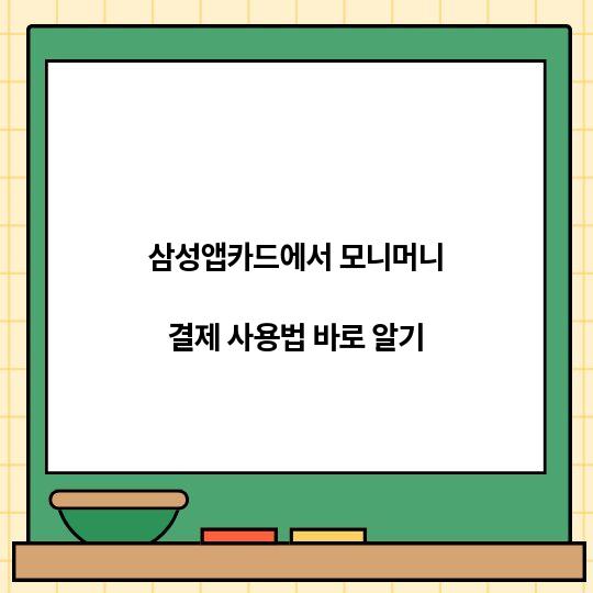 삼성앱카드에서 모니머니 결제 사용법을 알려드립니다. 간단하고 실용적인 방법을 통해 누구나 손쉽게 모바일 결제를 할 수 있도록 안내해 드릴게요! 삼성앱카드란 무엇인가? ...