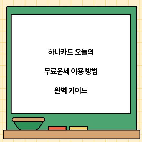 하나카드 오늘의 무료운세 이용 방법을 궁금해하시나요? 간단하고 실용적인 가이드를 통해 오늘의 운세를 손쉽게 알아보세요! 하나카드 오늘의 무료운세란? 하나카드 오늘의 무료운세는 ...