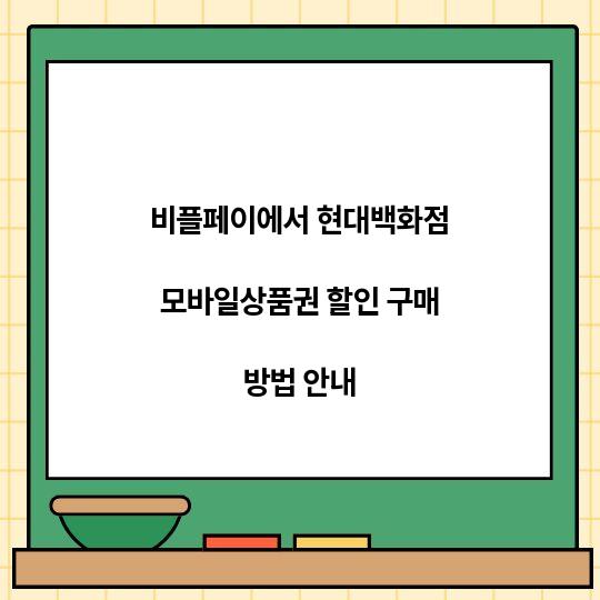 비플페이는 현대백화점 모바일상품권을 할인된 가격에 구매할 수 있는 훌륭한 방법입니다. 이 가이드를 통해 쉽고 간단히 할인 구매 절차를 안내해 드립니다. ...