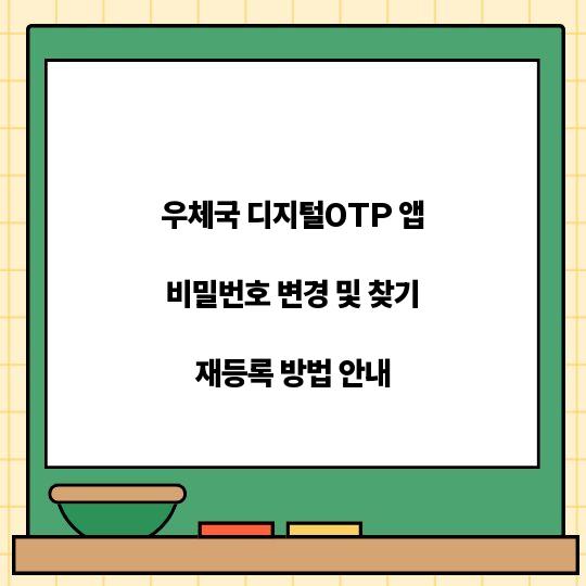 우체국 디지털OTP 앱의 비밀번호를 변경하거나 찾는 방법에 대해 자세히 안내드립니다. 보다 안전하고 간편한 금융 거래를 위해 이 내용을 확인해보세요! 우체국 ...