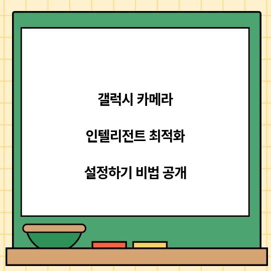 갤럭시 카메라 인텔리전트 최적화 설정하기 비법을 통해 완벽한 사진을 촬영하는 방법을 알아보세요. 이 가이드는 설정 팁과 최적화 기능을 쉽게 설명합니다. ...