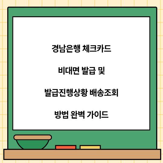 경남은행 체크카드를 비대면으로 발급받고 배송 진행 상황을 확인하는 방법을 마스터하세요! 이 가이드를 통해 어려움 없이 쉽게 절차를 이해할 수 있습니다. ...