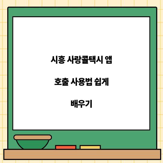 시흥 사랑콜택시 앱 호출 사용법을 쉽게 배워, 편리하고 안전하게 이동하세요! 이 가이드는 사용자 친화적인 방법으로, 초보자도 쉽게 이해할 수 있습니다. ...