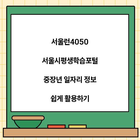 서울런4050 서울시평생학습포털을 활용하여 중장년 세대에게 알맞은 일자리 정보를 쉽게 찾는 방법에 대해 알아보자. 실용적이면서도 감정이 담긴 글을 통해 필요한 정보를 ...