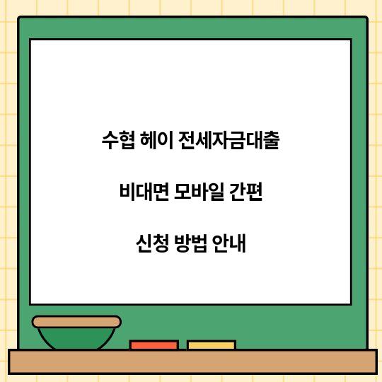 수협 헤이 전세자금대출 비대면 모바일 간편 신청 방법을 알아보세요. 이 글에서는 신청 과정, 필수 서류, 장점 등을 자세히 안내합니다. 수협 ...