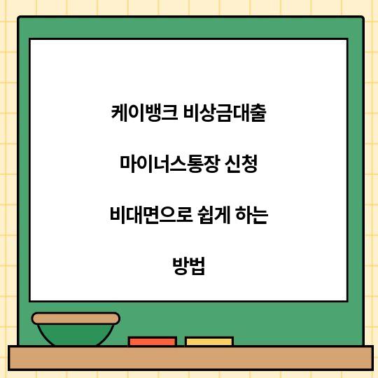 케이뱅크 비상금대출 마이너스통장 신청 비대면으로 쉽게 하는 방법을 알아보세요. 간편한 절차와 필수 정보로 비상금을 마련할 수 있는 기회를 제공합니다. 케이뱅크 ...