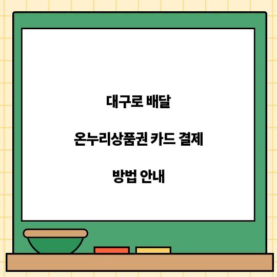 대구로 배달 온누리상품권 카드 결제 방법에 대한 상세한 안내입니다. 카드 결제 절차를 비롯해 유의사항과 자주 묻는 질문을 포함한 유용한 정보가 ...