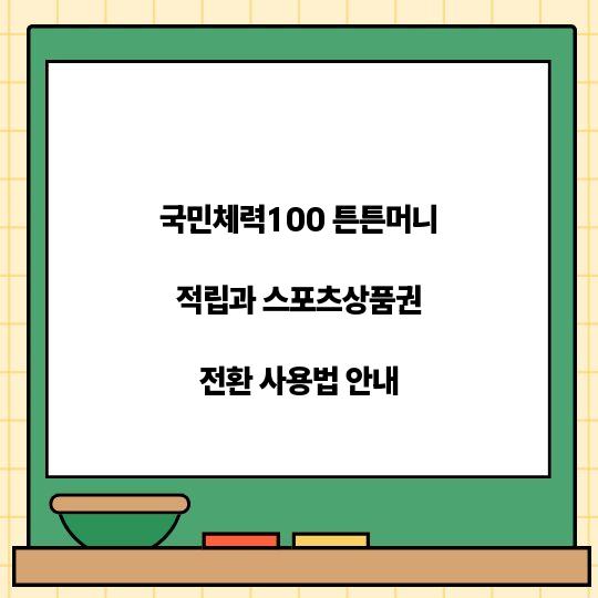국민체력100에서 제공하는 튼튼머니 적립 및 스포츠상품권 전환 방법에 대한 상세 안내로, 적립 과정과 사용법에 대해 쉽게 이해할 수 있도록 정리했습니다. ...
