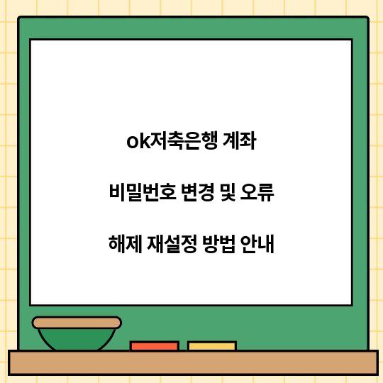 ok저축은행의 계좌 비밀번호 변경 및 오류 해제 재설정 방법에 대해 알아보세요. 계좌 관리가 간편해지고, 안전하게 보호할 수 있는 방법을 안내합니다. ...