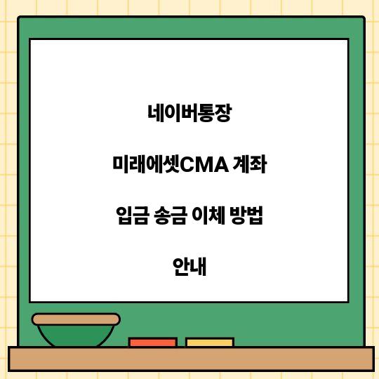 네이버통장과 미래에셋CMA 계좌는 간편한 송금과 이체를 지원합니다. 이 글에서는 각 방법을 자세히 설명하여 누구나 쉽게 사용할 수 있도록 도와드립니다. 네이버통장과 ...