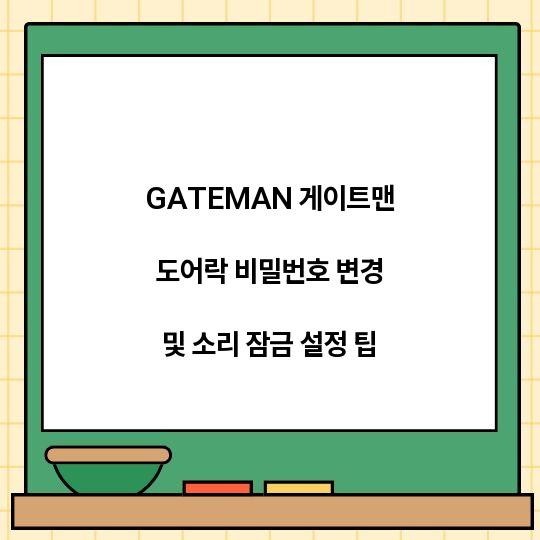 GATEMAN 도어락의 비밀번호 변경 및 소리 잠금 설정 방법을 안내합니다. 쉽게 따라할 수 있는 단계별 가이드를 통해 안전하고 편리하게 사용하세요! ...