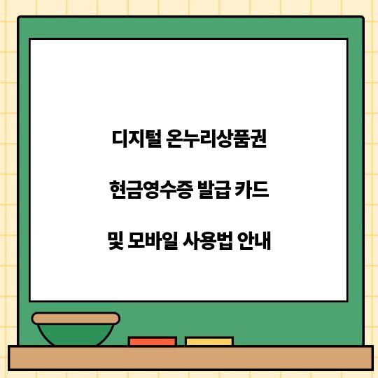 디지털 온누리상품권의 현금영수증 발급 카드 및 모바일 사용법에 대한 안내를 제공합니다. 이 정보를 통해 여러분의 쇼핑이 한층 더 편리해질 것입니다! ...