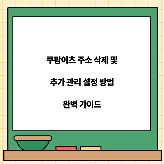 당신의 쿠팡이츠 사용자 경험을 한층 더 개선할 수 있는 방법, 바로 주소 삭제 및 추가 관리 설정입니다. 이 가이드를 통해 ...