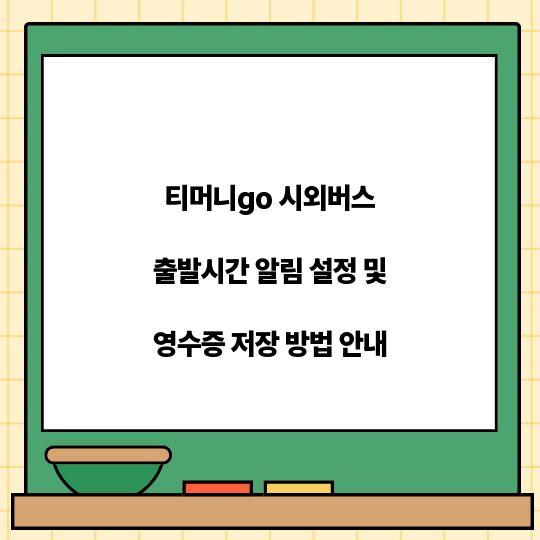 티머니go 시외버스 출발시간 알림 설정과 영수증 저장 방법에 대해 자세히 알아보세요! 귀찮은 출발 시간을 놓치지 않고, 편리하게 영수증을 저장하는 방법을 ...