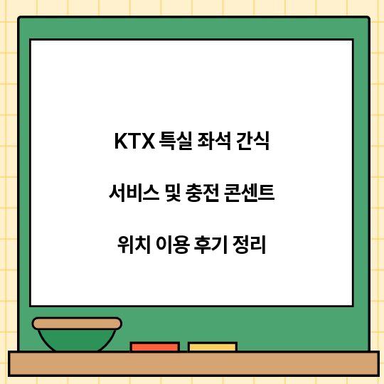 이번 포스트에서는 KTX 특실 좌석의 간식 서비스와 충전 콘센트 위치에 대한 생생한 이용 후기를 정리해 보았습니다. 여행을 더욱 편리하고 즐겁게 ...