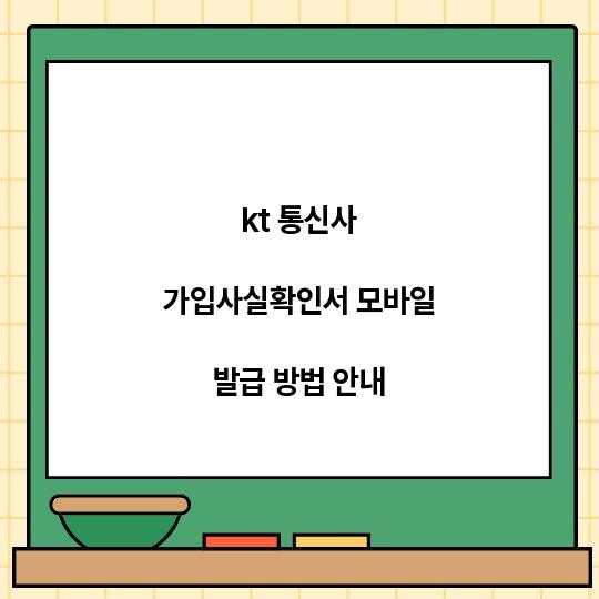 kt 통신사 가입사실확인서 모바일 발급 방법에 대해 알아보며, 간편하고 사용자 친화적인 모바일 발급 절차를 자세히 안내해드립니다. 지금부터 그 과정을 함께 ...