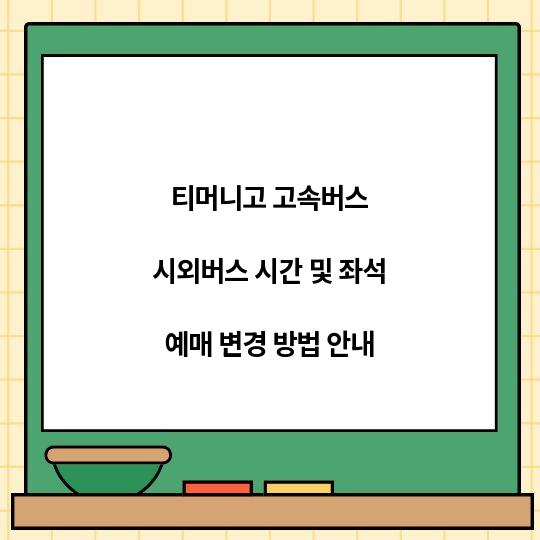 티머니고를 이용해 고속버스와 시외버스의 시간을 확인하고 좌석을 예약하는 방법은 간단합니다. 본 가이드를 통해 쉽게 변경할 수 있는 방법을 알려드릴게요! 티머니고 ...