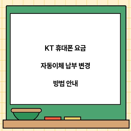 KT 휴대폰 요금 자동이체 납부 변경 방법에 관한 정보를 간단하고 유익하게 안내합니다. 새로운 방법으로 쉽게 납부를 변경해 보세요! KT 휴대폰 ...