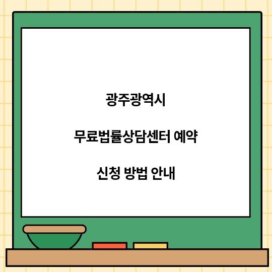 광주광역시에서 제공하는 무료법률상담센터의 예약 신청 방법을 자세히 안내합니다. 쉽고 간편하게 법률 상담을 받을 수 있는 방법을 알아보세요! 광주광역시 무료법률상담센터란? 광주광역시는 ...