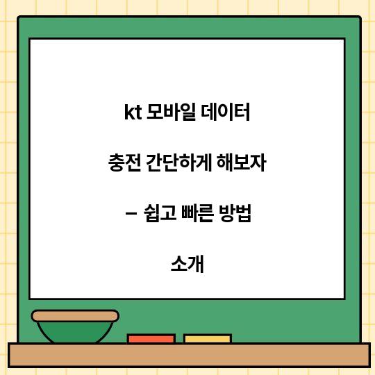 kt 모바일 데이터 충전 간단하게 해보자! 이 가이드를 통해 쉽고 빠르게 모바일 데이터를 충전하는 방법에 대해 안내드리겠습니다. 필요한 정보를 한 ...