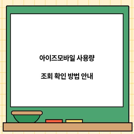 아이즈모바일 사용량 조회 확인 방법을 통해 사용량을 쉽게 확인할 수 있는 방법을 알아보고, 체계적으로 관리하는 법에 대해 알아보겠습니다. 시간 절약과 ...