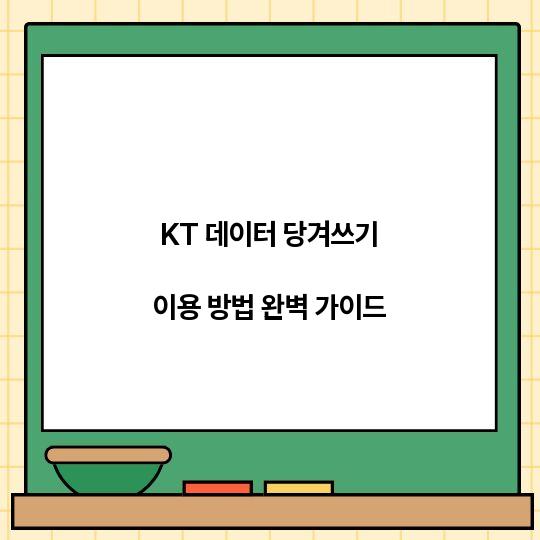 KT 데이터 당겨쓰기 이용 방법에 대한 포괄적인 가이드를 제공합니다. 이 가이드를 통해 방문하신 분들이 KT 데이터 당겨쓰기를 손쉽게 활용할 수 ...