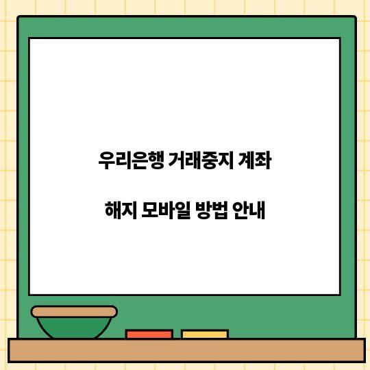 우리은행 계좌의 거래중지가 발생했을 때, 모바일로 간편하게 해지하는 방법에 대해 안내드립니다. 스마트폰만 있으면 쉽게 해결할 수 있습니다. 우리은행 거래중지 계좌 ...