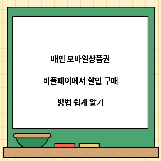 배민 모바일상품권을 비플페이에서 할인받아 구매하는 방법을 쉽게 이해하고, 저렴하게 이용할 수 있는 팁을 제공합니다. 이 글을 통해 간단한 절차와 유용한 ...