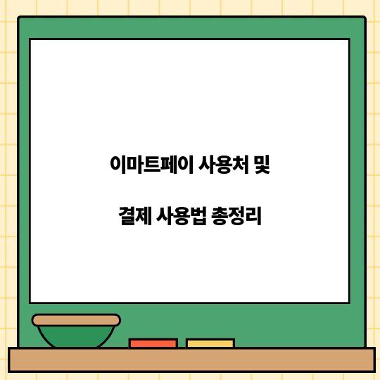 이마트페이의 다양한 사용처와 적절한 결제 방법을 정리하여, 소비자들이 더욱 편리하고 유용하게 사용할 수 있도록 돕습니다. 이마트페이란? 이마트페이는 이마트가 제공하는 모바일 ...
