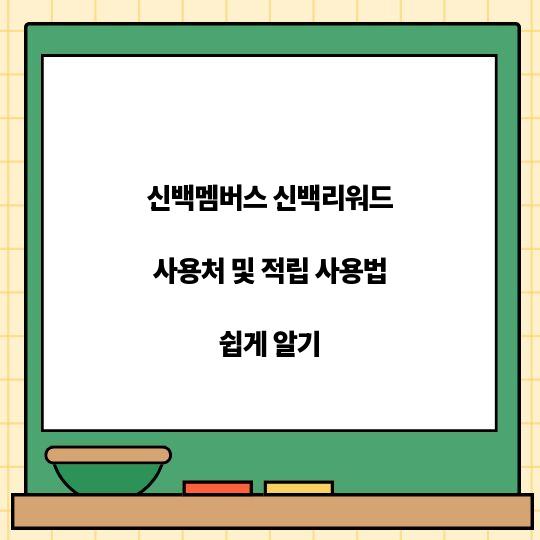 신백멤버스의 신백리워드 사용처와 적립 방법에 대한 상세한 정보를 제공합니다. 실용적이며 쉽게 이해할 수 있는 방식으로 구성되어 있어, 방문자 여러분이 궁금한 ...