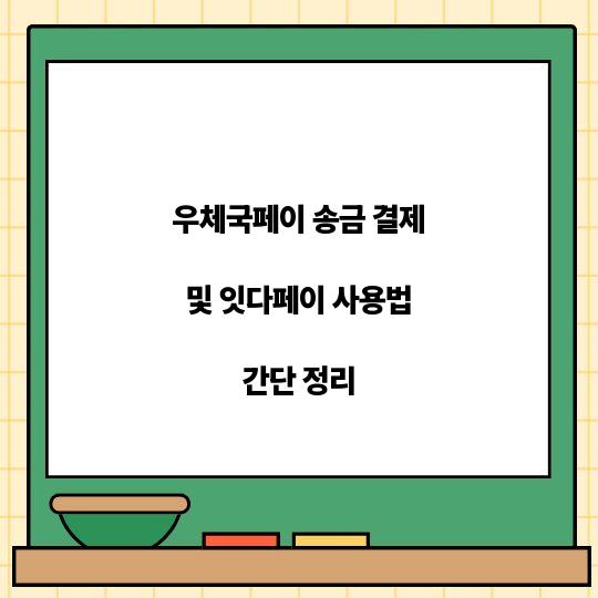 우체국페이 송금 결제와 잇다페이의 사용법을 쉽게 이해할 수 있도록 정리했습니다. 이 두 가지 서비스의 장점과 사용 방법을 차근차근 알아보세요! 우체국페이 ...
