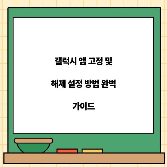 갤럭시 앱 고정 및 해제 설정 방법을 배우면 당신의 스마트폰 사용이 더욱 간편해지고 효율적이 될 것입니다. 이 가이드를 통해 빠르고 ...