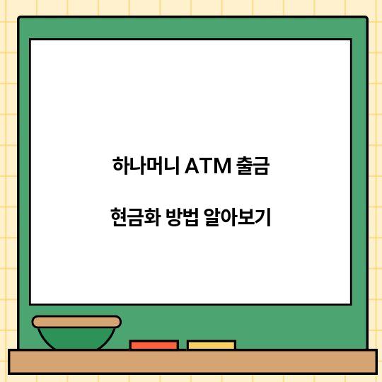 하나머니 ATM 출금 현금화 방법을 쉽게 이해하고, 필요한 정보를 단계별로 알아보세요. 이 유용한 가이드를 통해 효율적으로 현금을 이용하는 방법을 배워보세요! ...