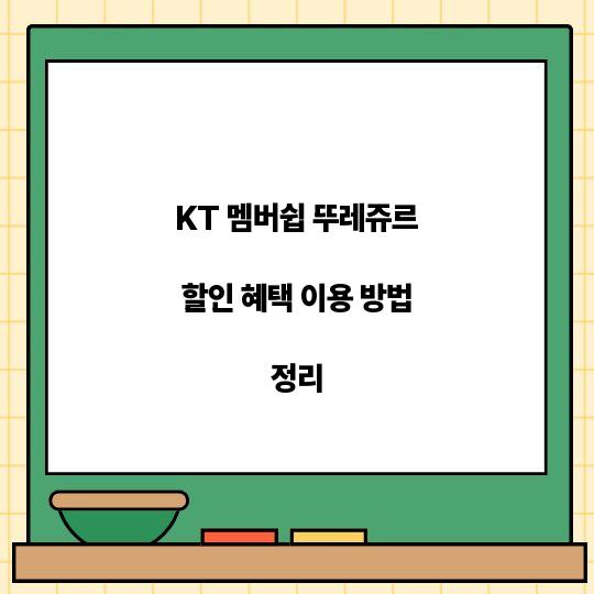 이번 포스팅에서는 KT 멤버쉽 뚜레쥬르 할인 혜택 이용 방법을 상세히 안내합니다. 간단하면서도 유용한 정보로 여러분의 소비 생활을 더욱 풍부하게 만들어 ...