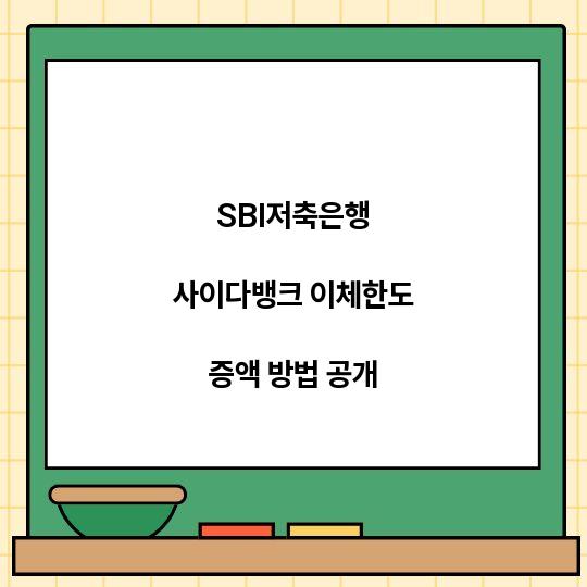 이번 포스팅에서는 SBI저축은행 사이다뱅크의 이체한도를 증액하는 방법에 대해 자세히 설명합니다. 간단한 절차로 이체한도를 높여 보다 편리하게 은행 서비스를 이용해 보세요! ...