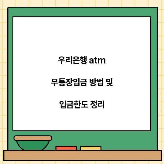 우리은행 ATM에서의 무통장입금 방법과 입금한도를 상세히 알아보세요. 복잡하지 않으며, 모든 고객이 쉽게 이해하고 따라할 수 있도록 친절히 안내합니다! 우리은행 ATM ...